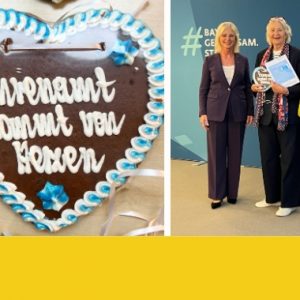 Am 12. Oktober wurde Renate Hausdorf, die erste Vorsitzende unseres Vereins, im Rahmen einer Veranstaltung im Bayerischen Ministerium für Familie, Arbeit und Soziales mit der Bayerischen Ehrenamtsurkunde ausgezeichnet.